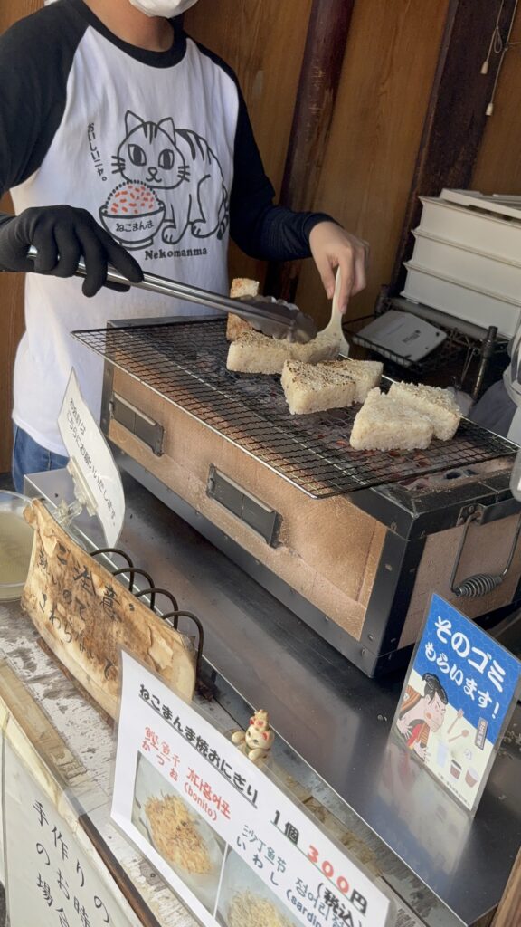 お昼の12時からおにぎりを焼き始めてくれるそうなので、12時くらいにお店を訪れると長蛇の列💦