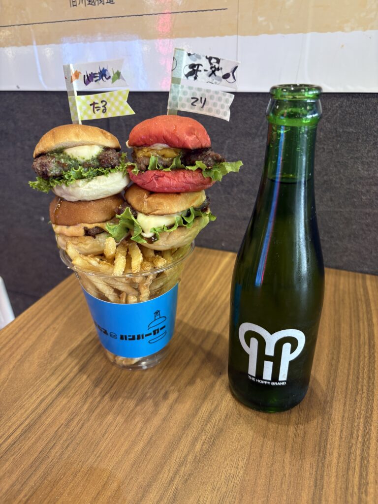 焼き芋オブジェのそばのベンチで頂きましたが、このハンバーガー可愛いだけじゃない・・・